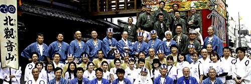仲間の数名が柳の枝を切りに山へ向かっております。当然地主さんに許可は頂いての作業です 柳の枝を北観音山の後部に飾ります 巡行が終わるとこの柳の枝も一瞬の内に丸裸になってしまうのです。柳の説明は後ほど